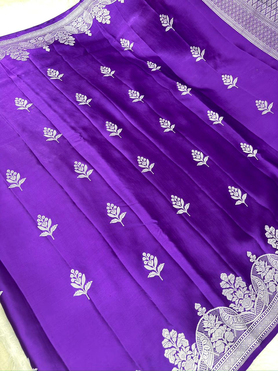 Deep Violet Pure Mashru Silk Saree with Silver Zari Floral Buttas