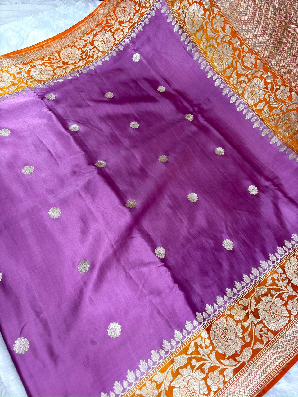 Lavender Purple & Orange Dual-Tone Mashru Silk Saree with Silver Zari